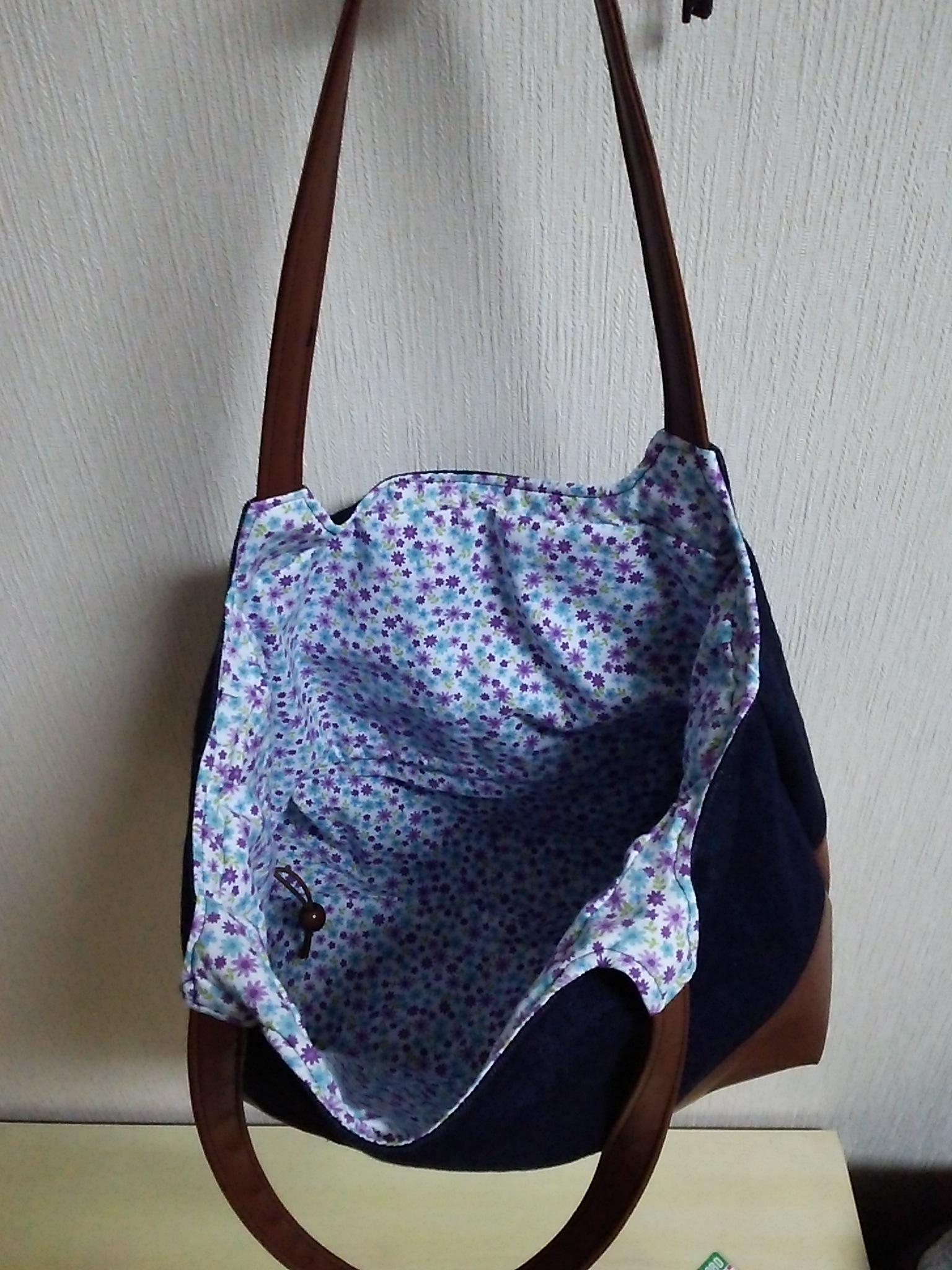 デニム部分を出っ張らせて持ち手を長くするつもりだったのに、思ったより長くならなかった(´・ω・`)