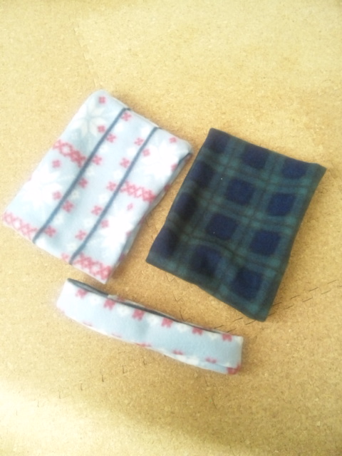生地はぼうずのコートを作ったときの残りのブラックウォッチのフリースと、