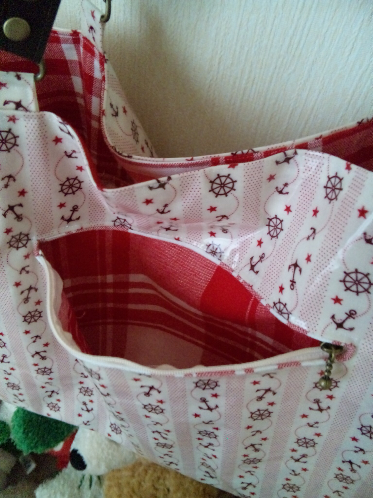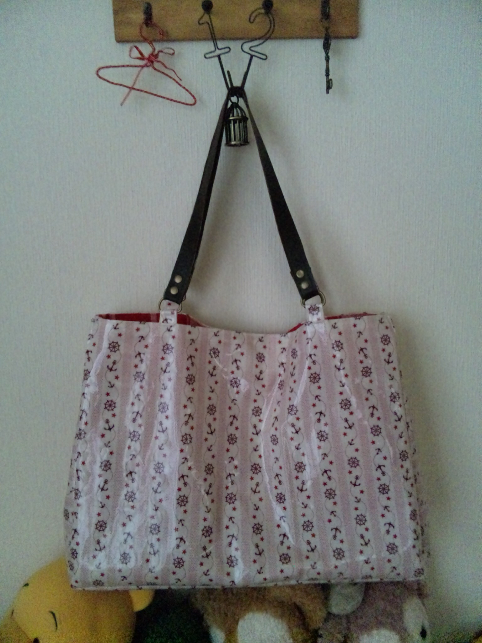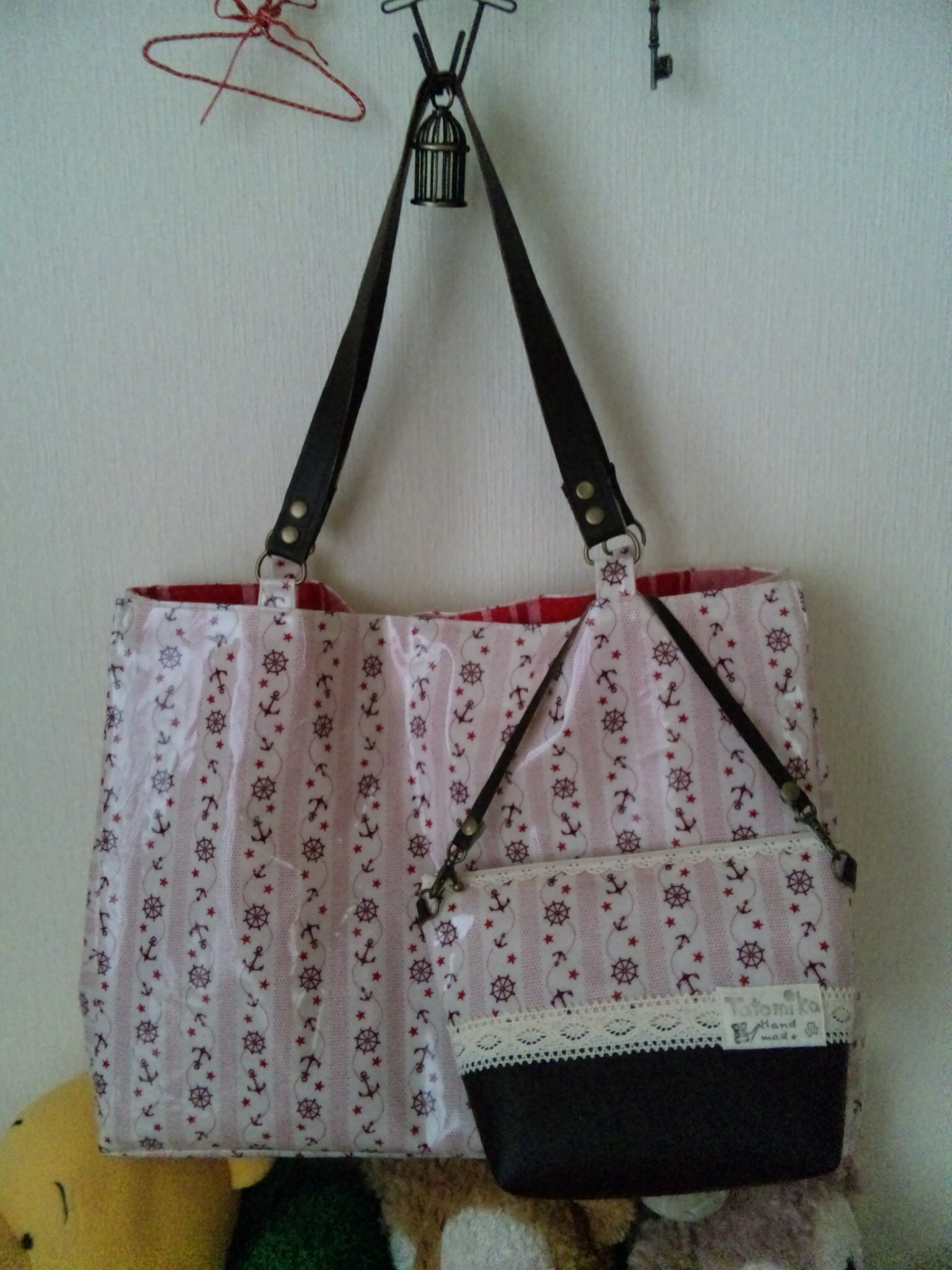 一目惚れして買ったピンク碇のビニールコーティングのカット激安生地(私こんなのばっかw)