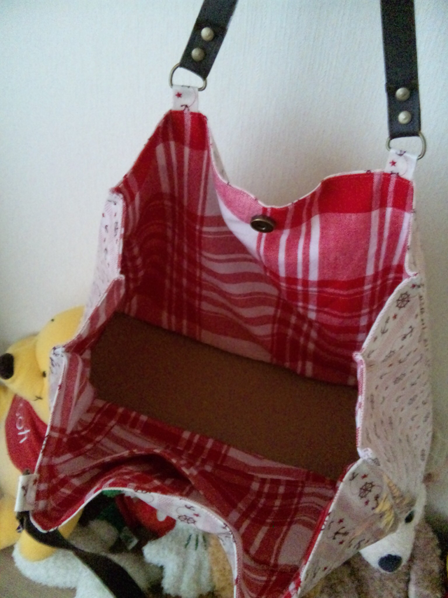 ダンボールを中生地で包んで底板もつくり、結構しっかりした感じに出来ました^^