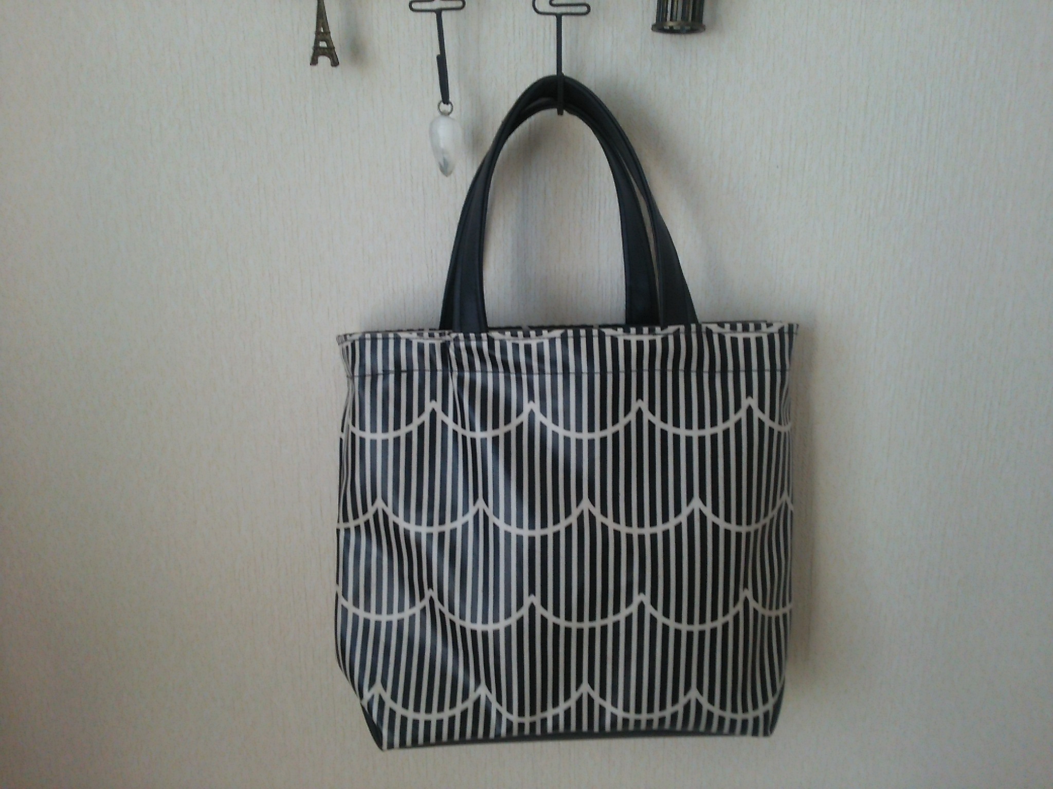 前回作った黒いビニールトートが好評で、もう一つ作りました!