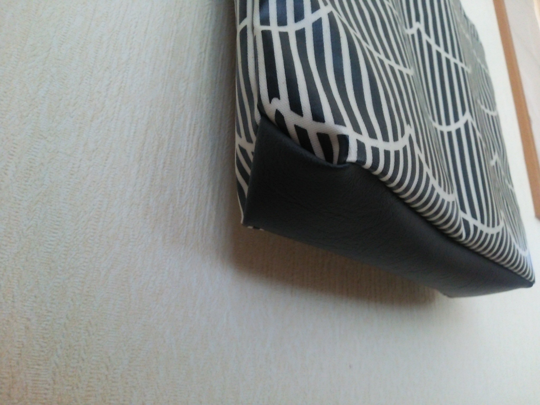 中のポケット用の生地も足りなかったので、余っていた紺ストライプのラミネート生地も使ってw
