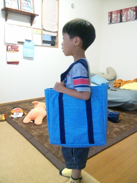 追記、写真を撮った時間でかぼうずが持っているバックと違う色に見えますが、同じものですよ。
