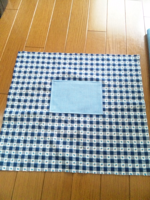 2枚を中表に合わせ両横、下部を縫う。その際どこかに返し口を開けるのを忘れずに。