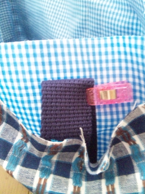 中にポケットをつける場合も縫い付けてください。