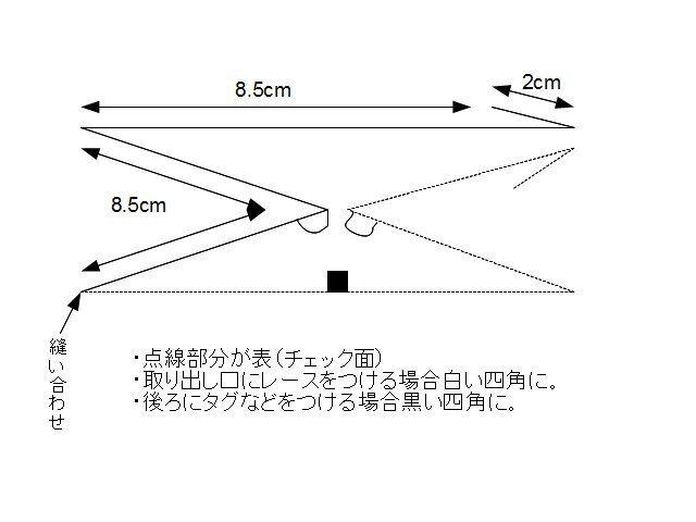 一枚布で作る場合は、38cm×14.5cmで作り方は③から同じです。