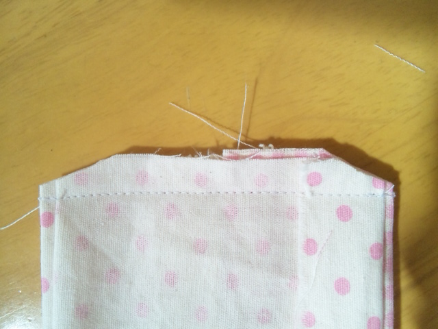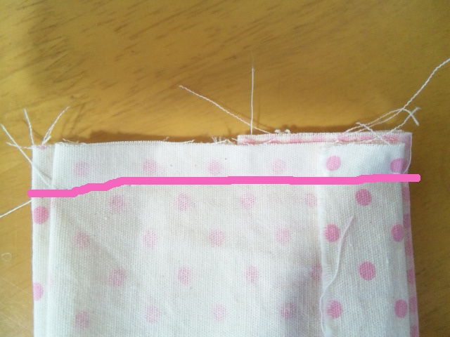 ⑦綺麗に折りなおして、上下1cmの縫い代で縫う。
