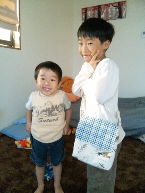 ぼうずの恐竜柄生地で。