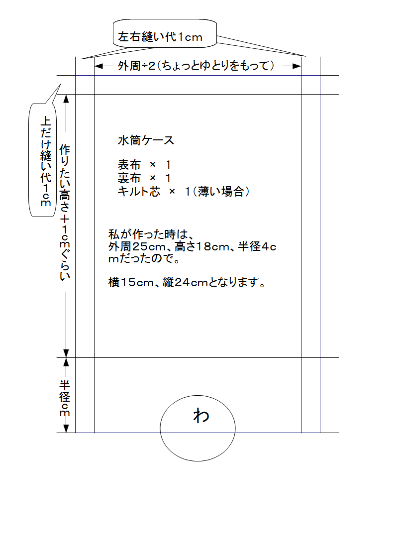 ちょっと不安な方は横を外周÷2+1cmぐらい(プラス左右縫い代ですよ)でやるといいかも。