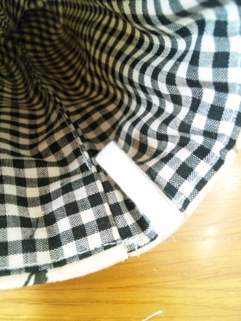 で、中に織り込んで口を一周縫います。その時ゴムも中に織り込んで一緒に縫っちゃってもいいかも。