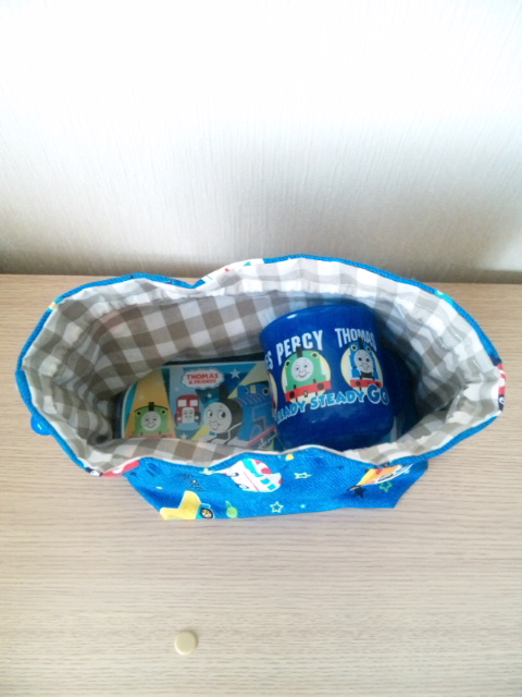 お弁当袋ですが、幼稚園の給食グッズ入れにします。(3点セット&コップ)