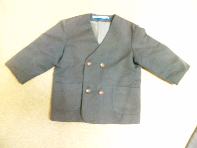 あ、後、肩も下がってしまってみっともなかったのですが、肩を詰めるのはさすがに無理なので、いっその事ボタンの場所を変えてしまえ! とボタン位置を3cmぐらいずらしました。