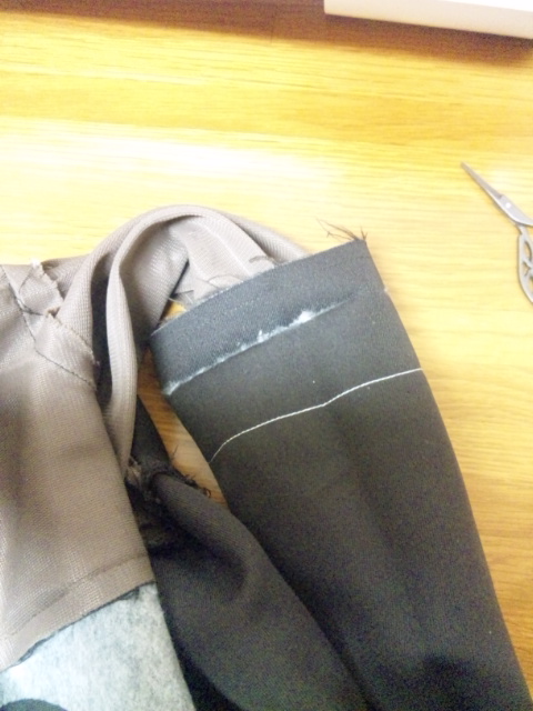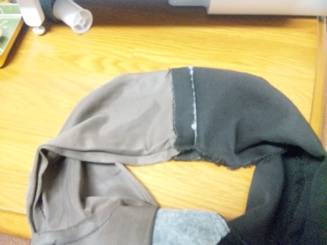 袖は後で直すことも考えると、ただ折りたたんでとめるだけがいいかなぁと思ってのですが、そうすると浮く。