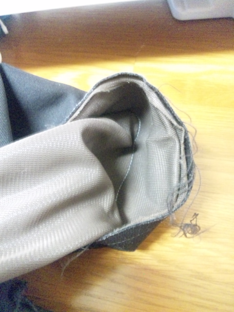 こんな感じにくっついているので、裏地の方を中へぐいぐい入れます。
