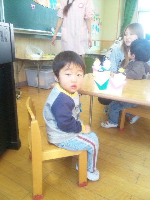 歌や踊りは拒否ってたのですが、お雛様の制作には食いついて、一人でイスに座ることが出来ました~