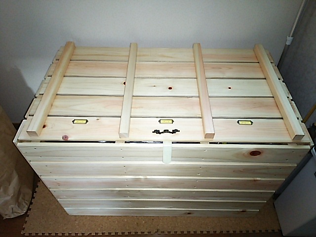 前回作ったベンチ収納とほぼ同じ作り方。今回蓋はすのこです。