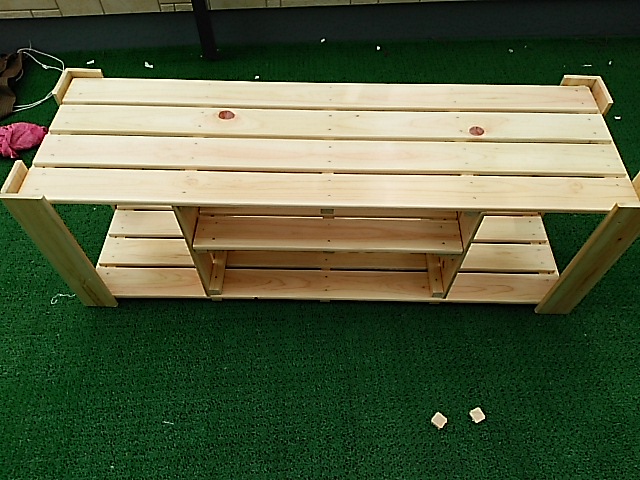 この上と下のすのこは、120cmの一枚を使っているのですが、やっぱり150cmにすればよかったーとちょっと後悔。