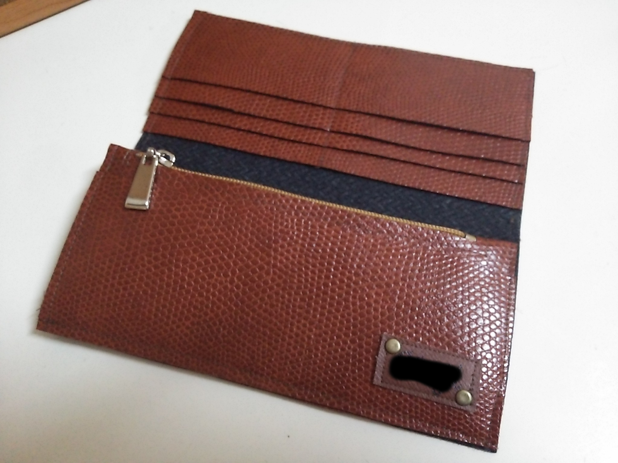 旦那に頼まれていた長財布。途中何度か作ろうと思いつつ、型を考えるのが面倒臭くて放置していたのですが、思い立って急遽作りましたw
