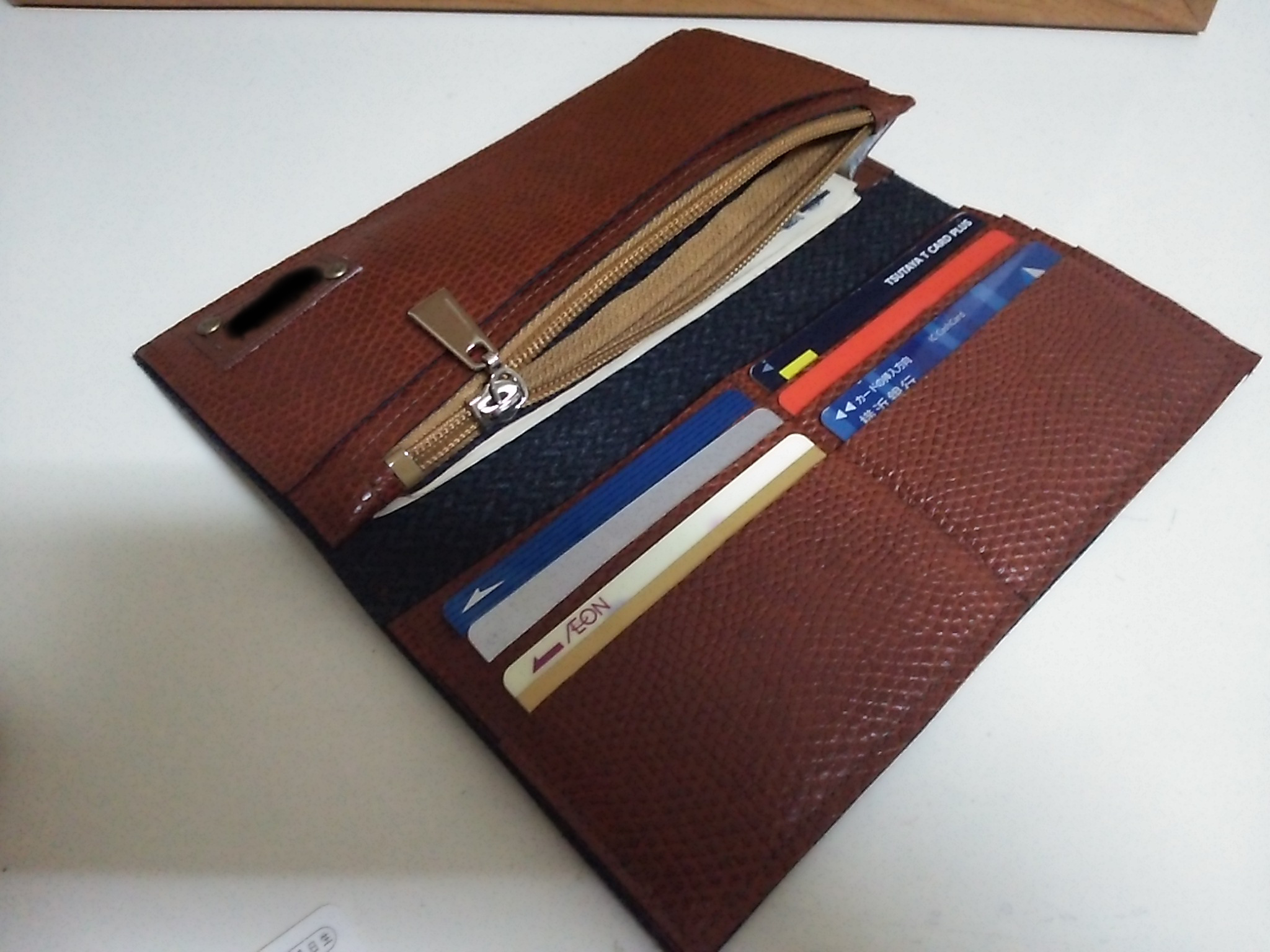 札入れ部分は片方だけマチをつけました。こうすれば断然入れやすい!