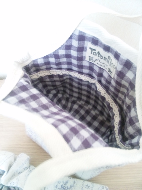 ちょっとそこまで行く時に使えるミニサイズのグラニーバックです。マチを多めに取ってあるので、小さいですが思ったより物が入ります。
