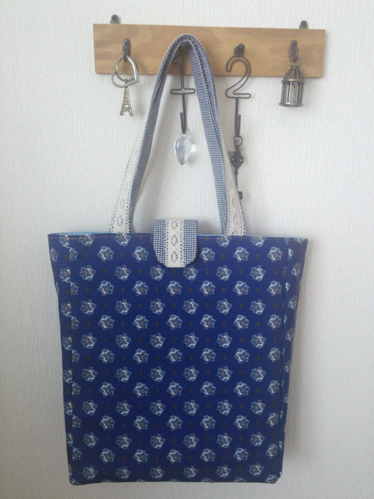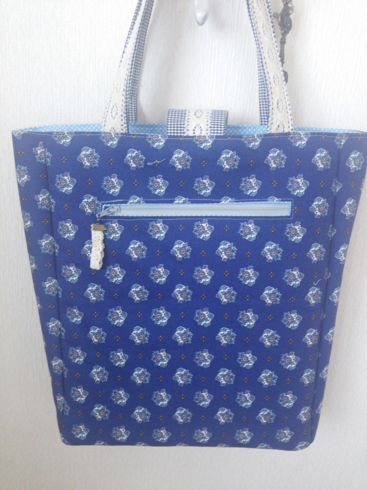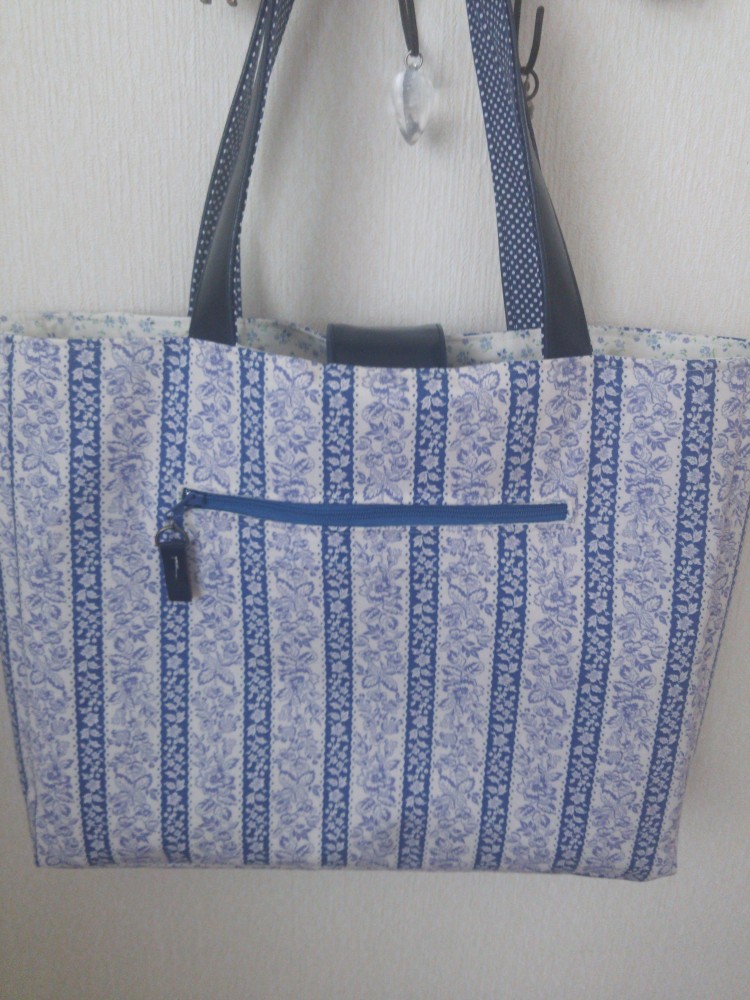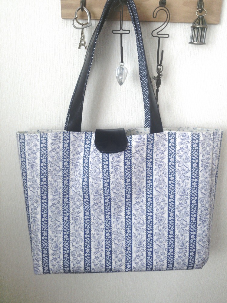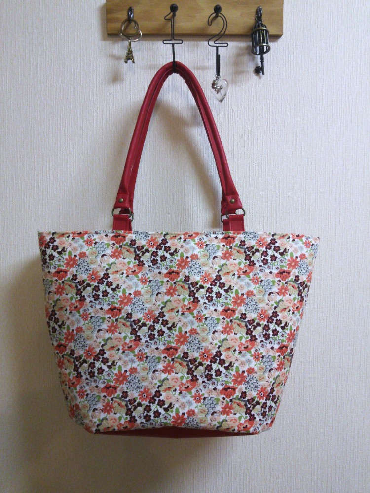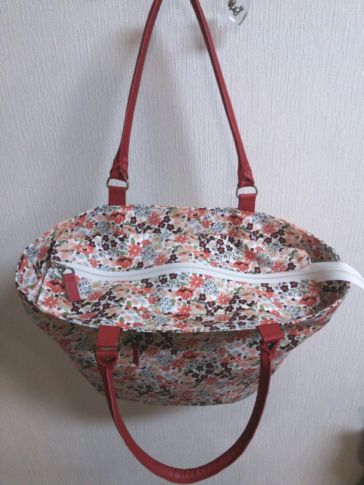 中&巾着部分は小花柄で、折り込むと普通のトートっぽくなります。