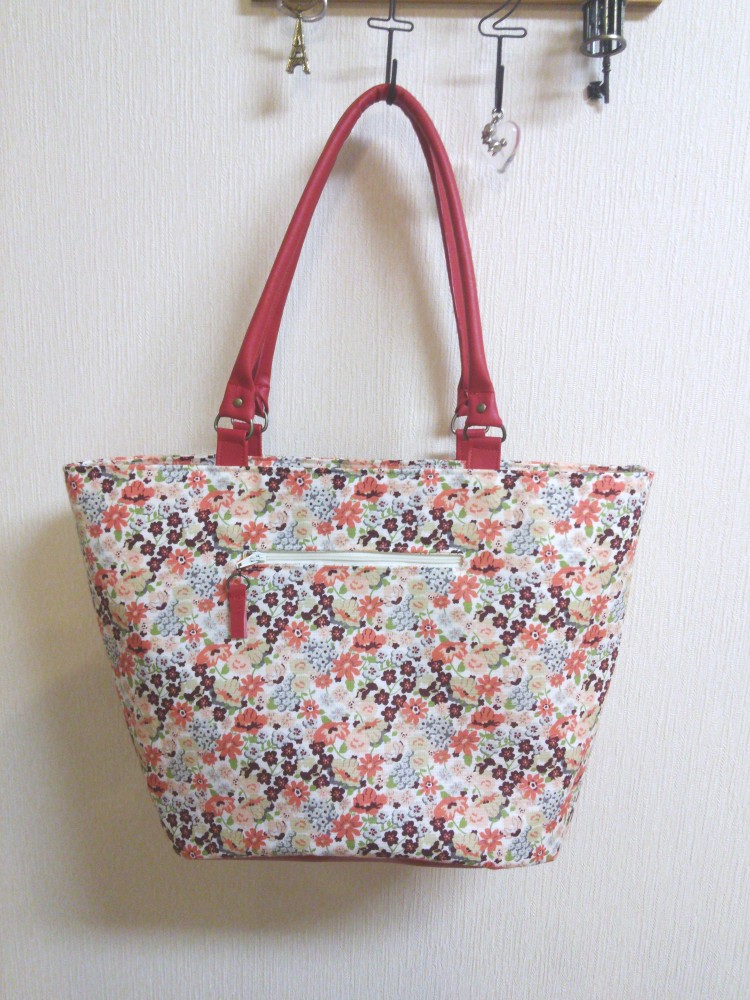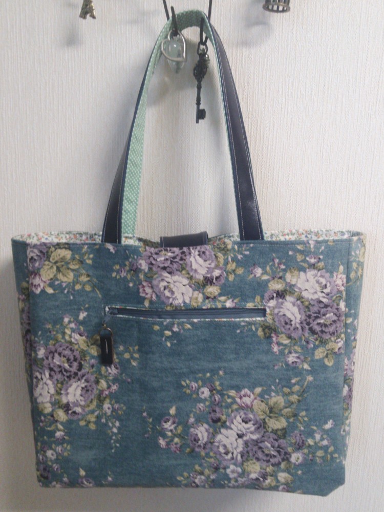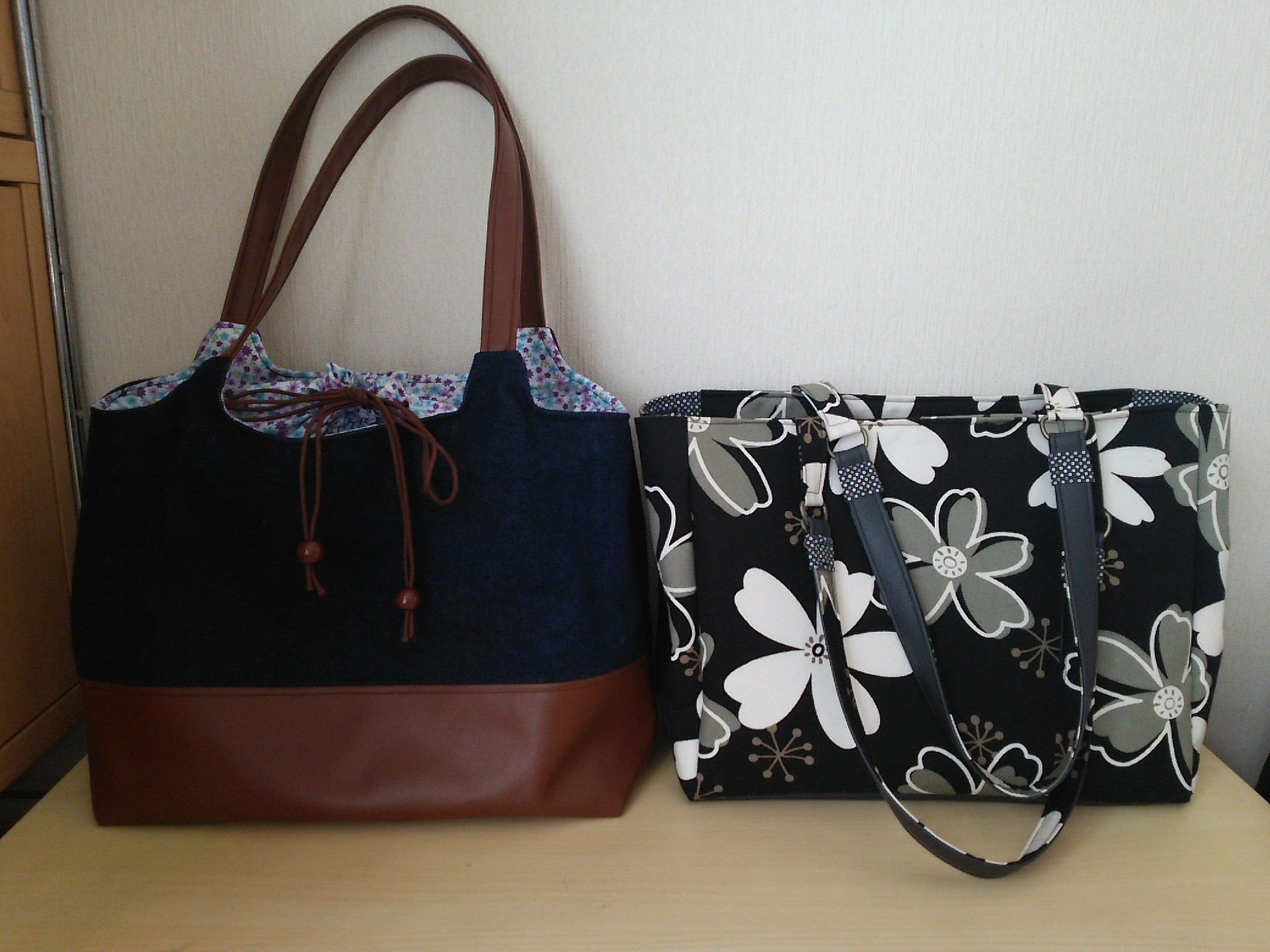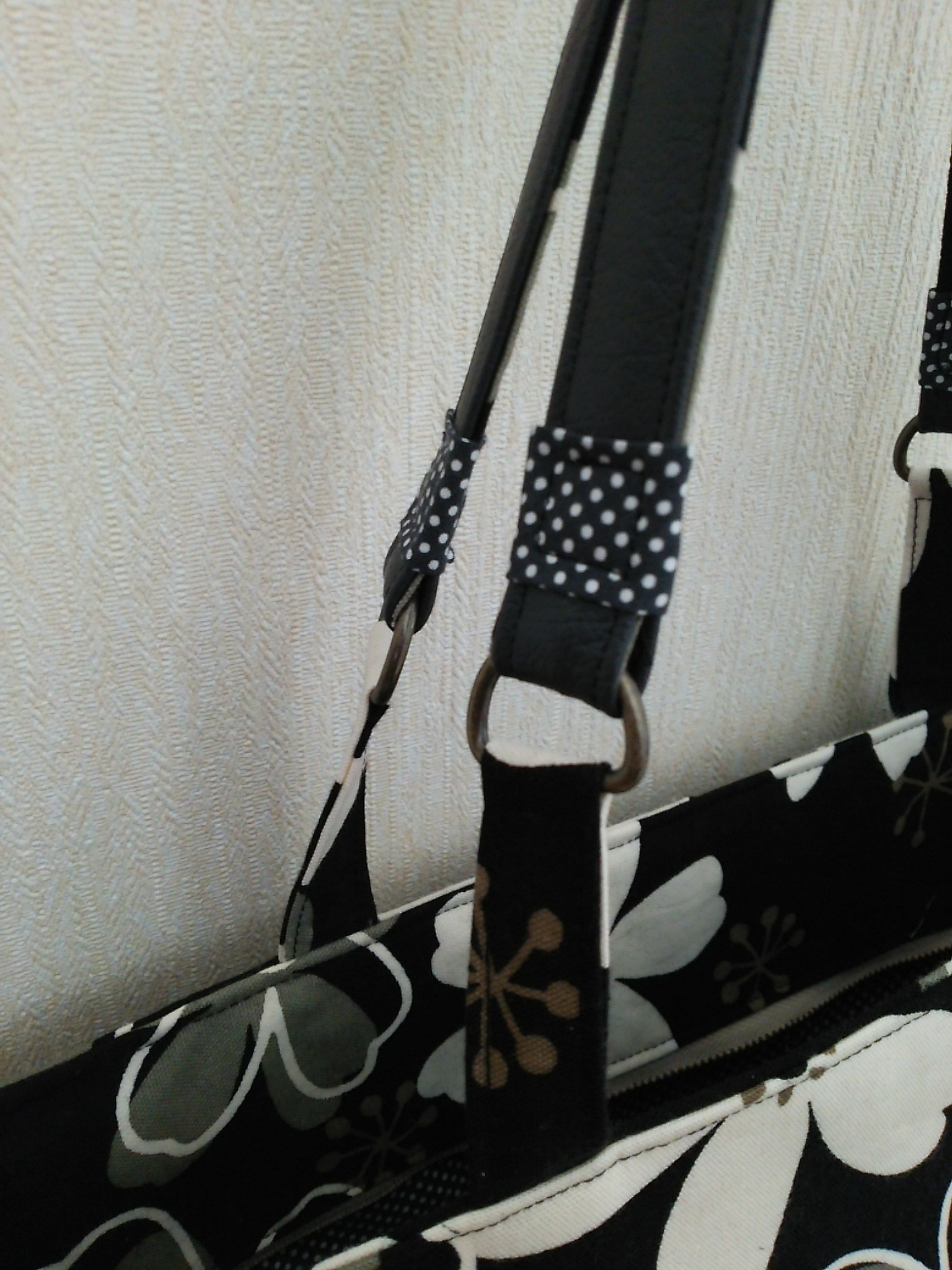一つ目は別マチトートが基本です。黒の花柄生地でファスナー口布付きでシンプル&シックにしました。