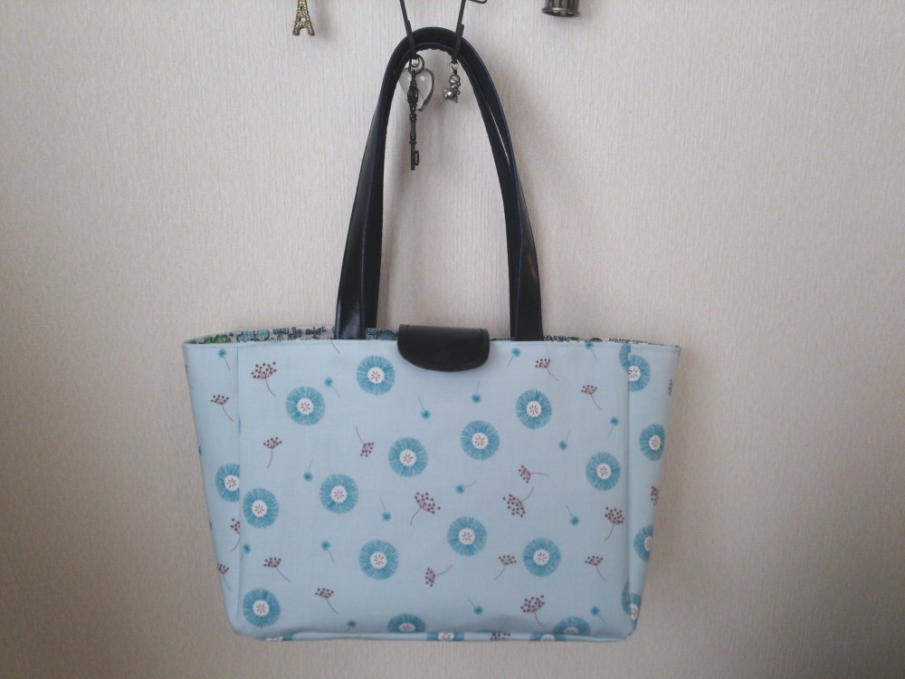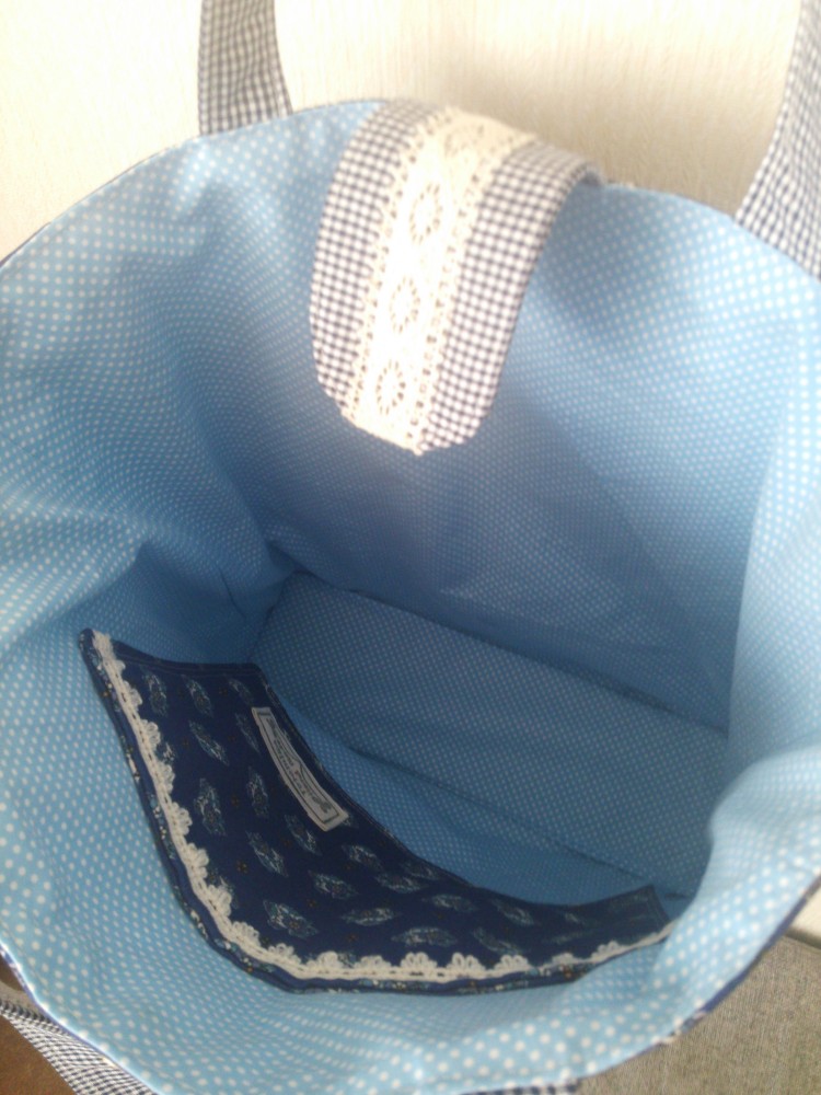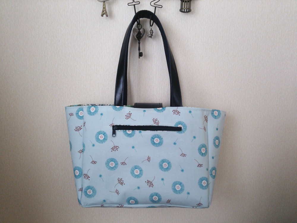 中は黒のドット生地でポケット一つ、底(写真忘れたw)と持ち手(表)はグレーの合皮。