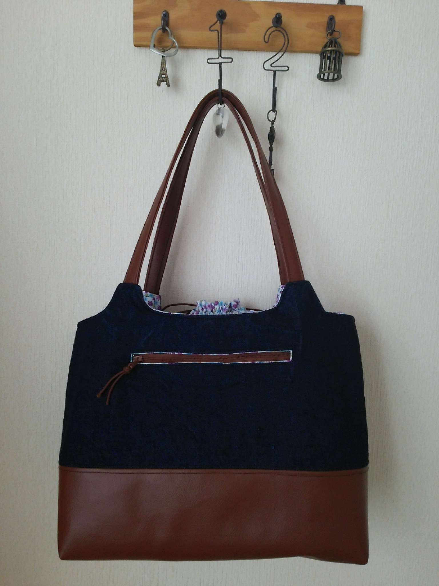 二つ目は、デニムと合皮を使って自由にと言って頂いたので、すぐに口布は巾着にしたい!と思いましたw