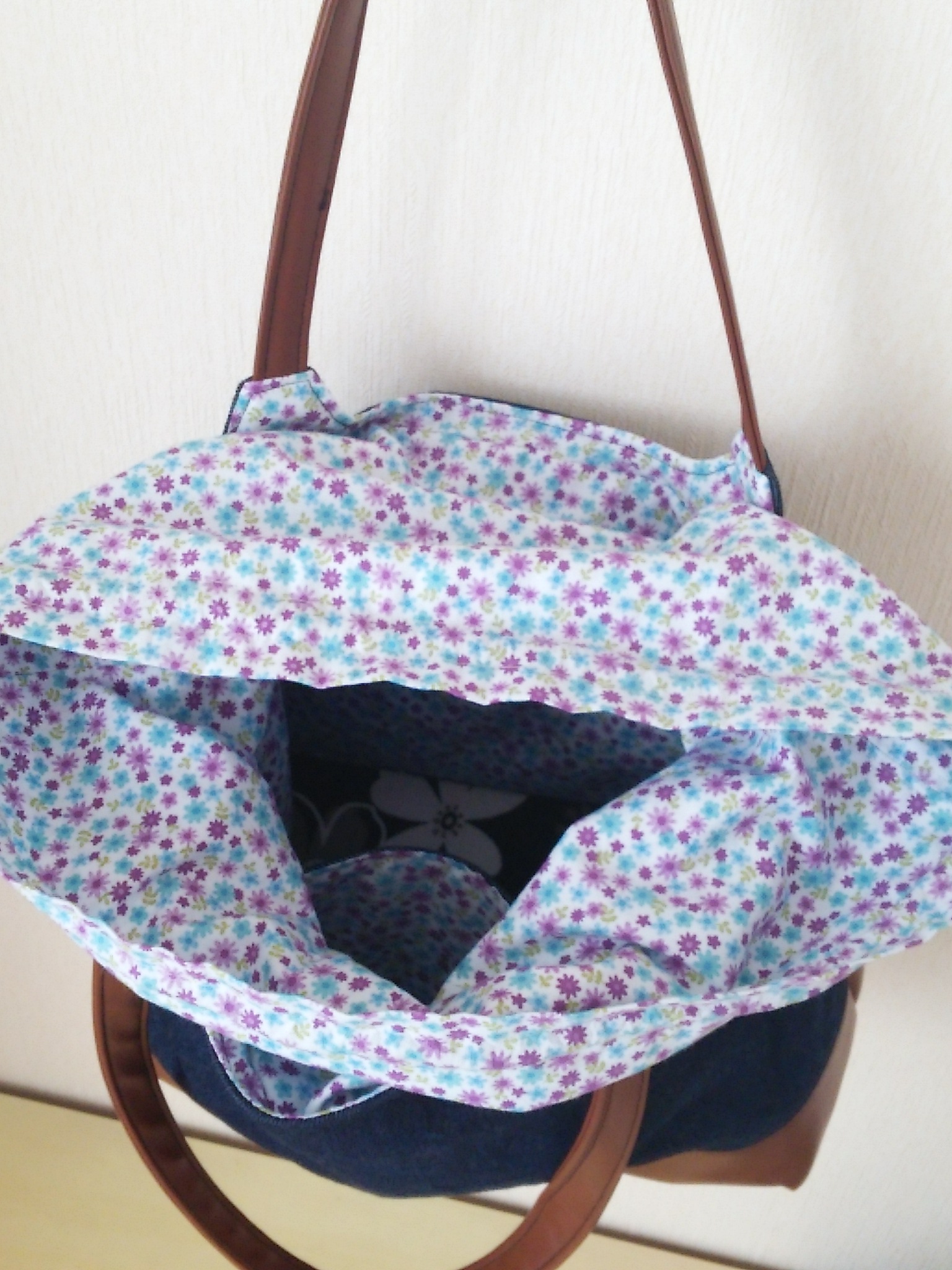 デニム部分を出っ張らせて持ち手を長くするつもりだったのに、思ったより長くならなかった(´・ω・`)