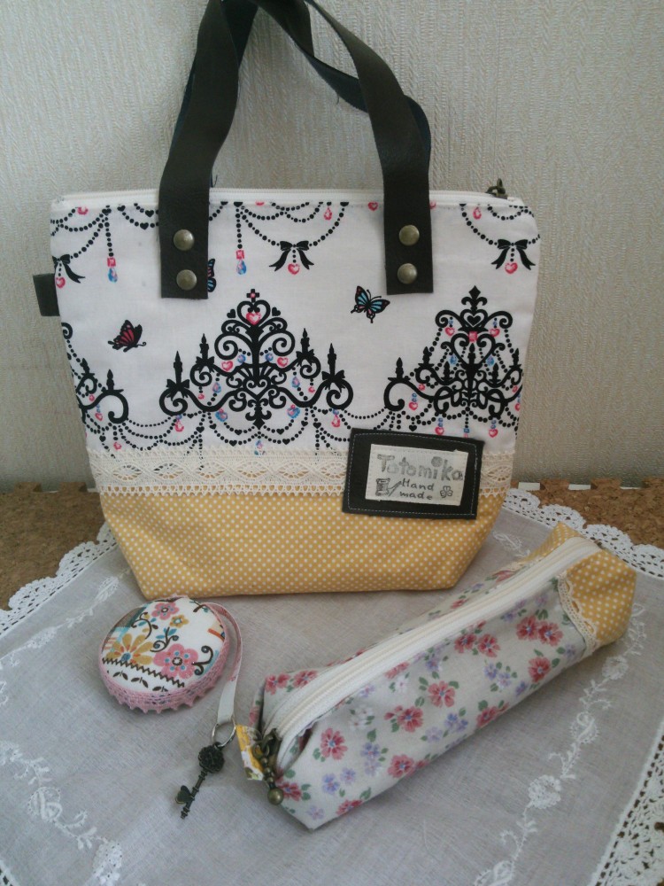 20cmファスナーを使ったミニバックにペンケース。マカロンメジャーです。