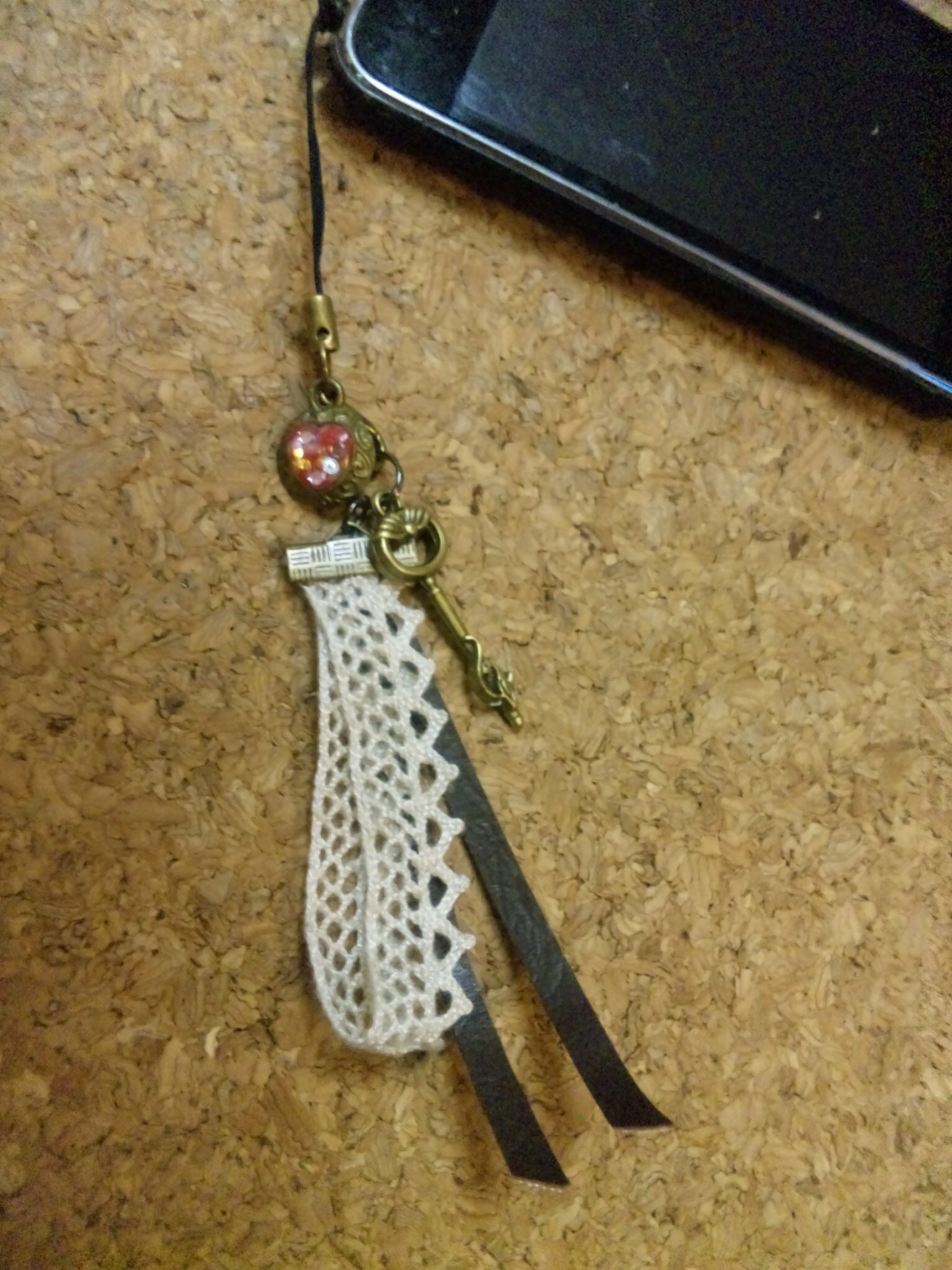 レース・皮・チャーム。それだけじゃ寂しかったので作ったUVレジンチャームもくっ付けて!