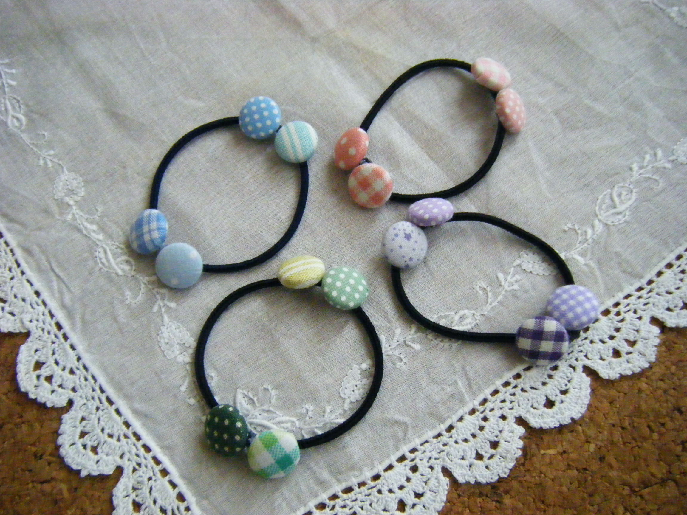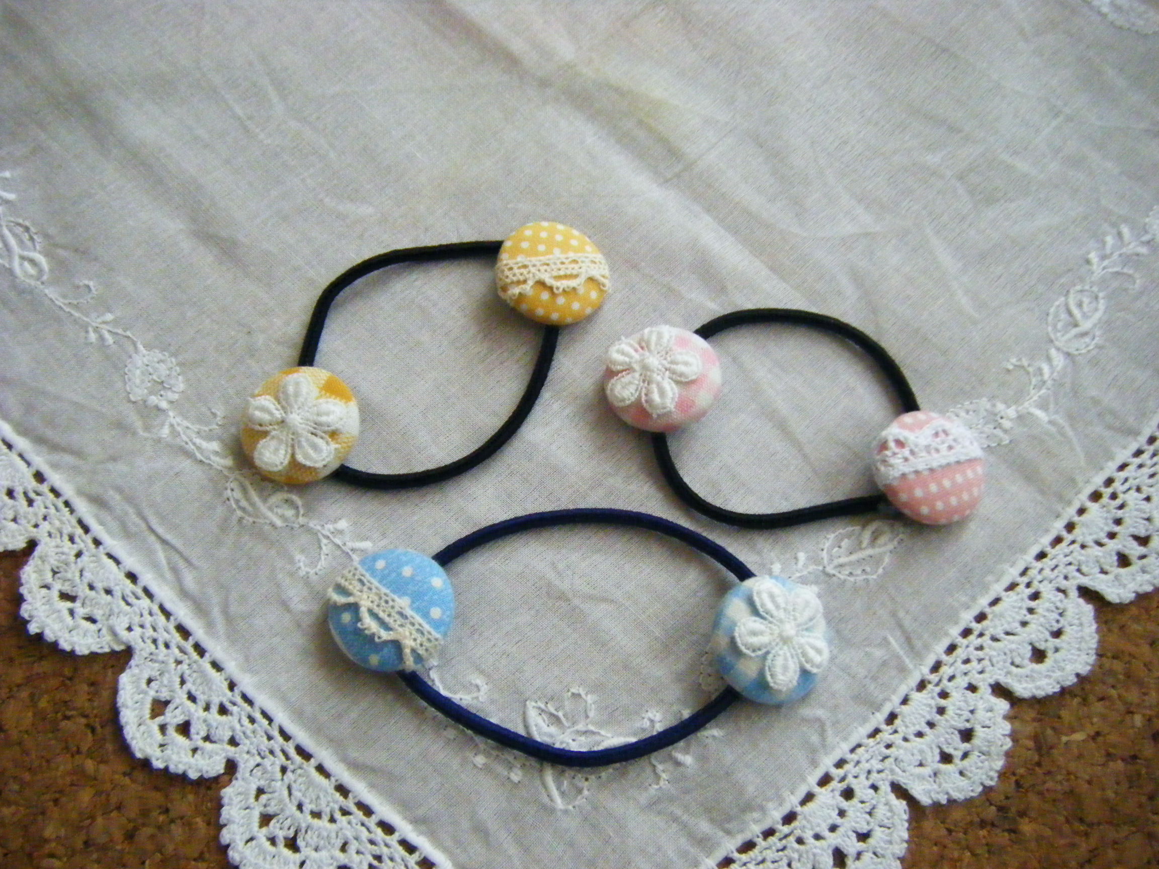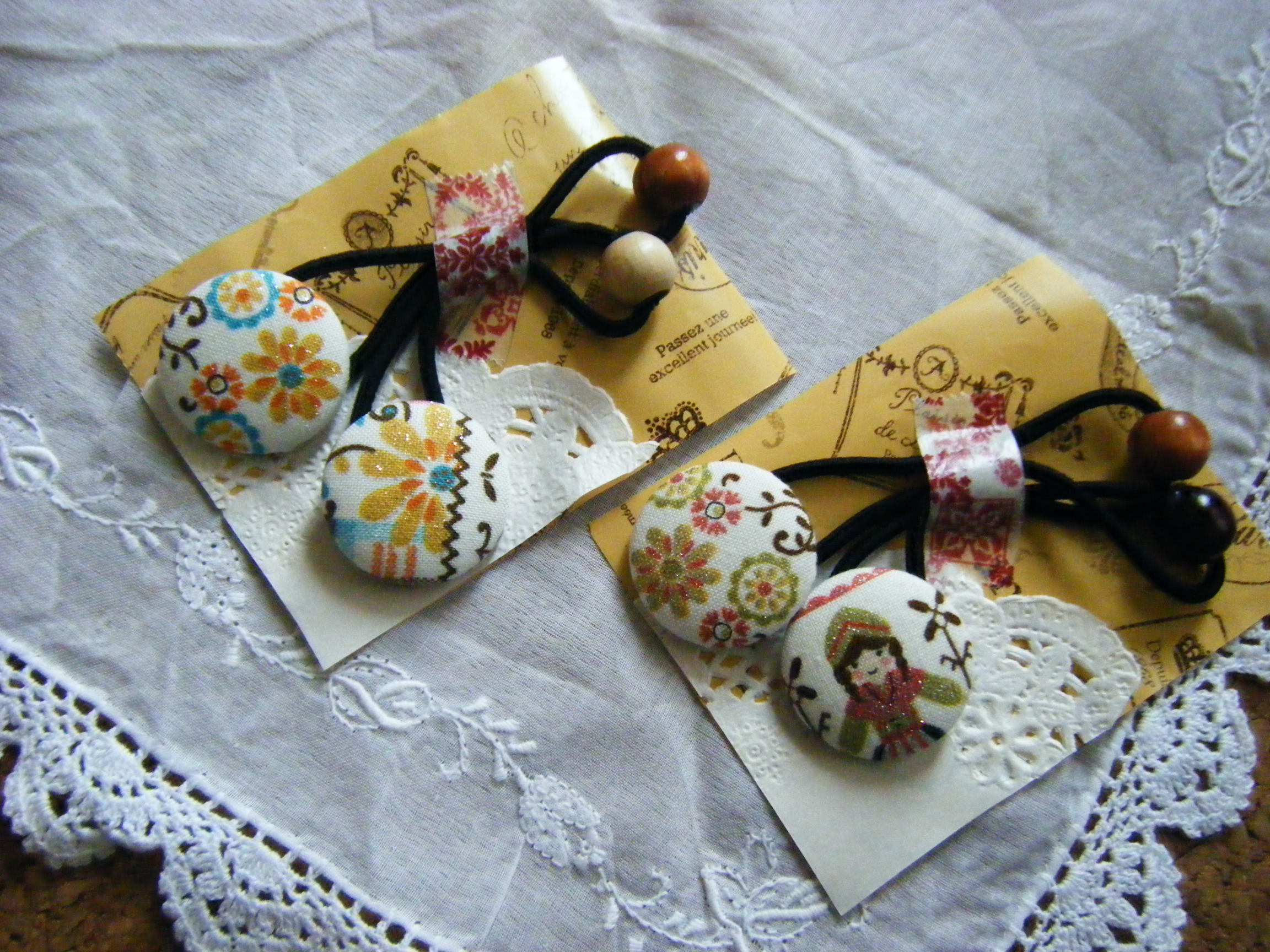 くるみボタンのヘアゴムを大・中・小と出品しました。