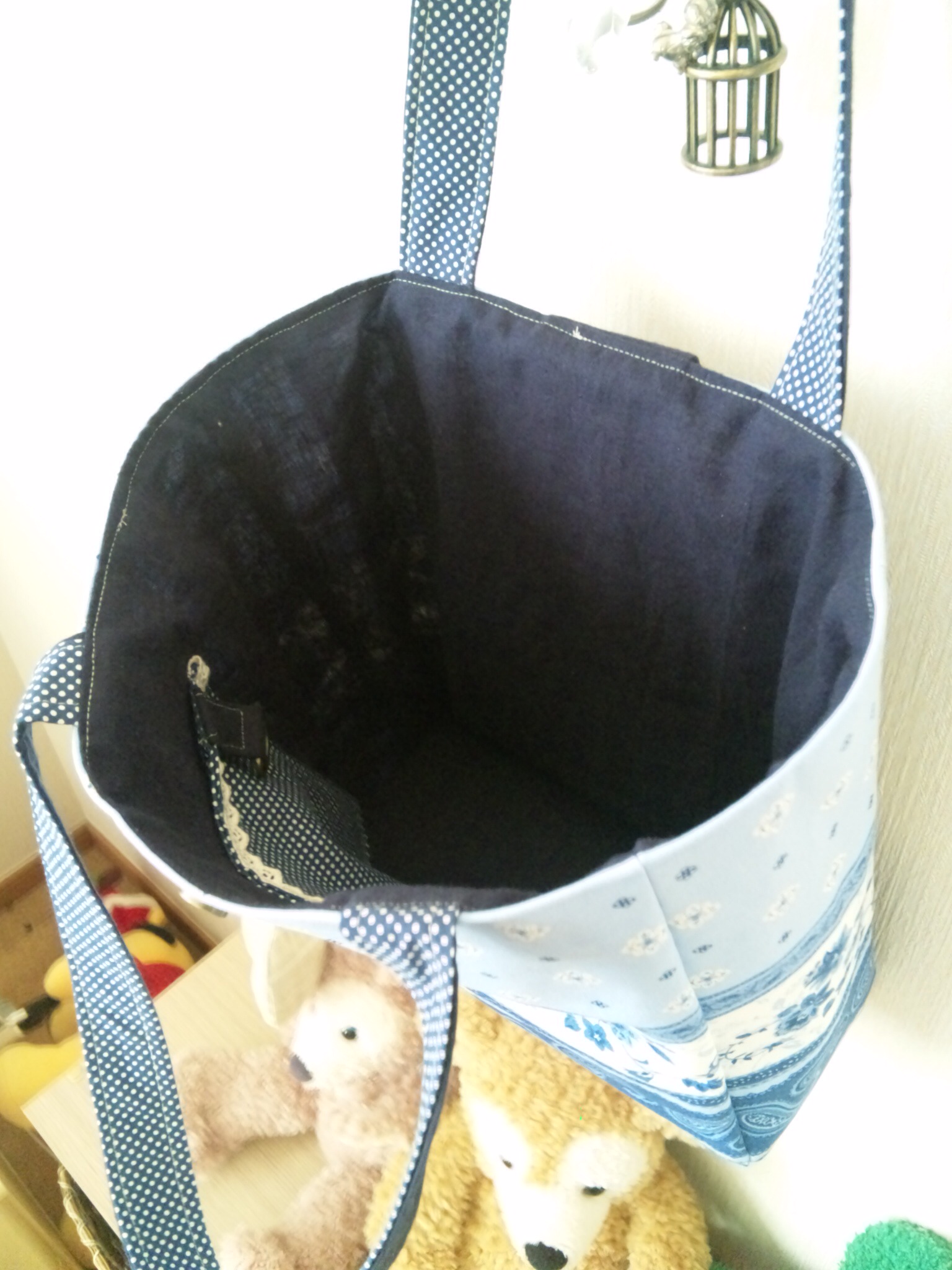 肩掛けも出来る持ち手は太めなので重いものでも肩が痛くなりにくいです。