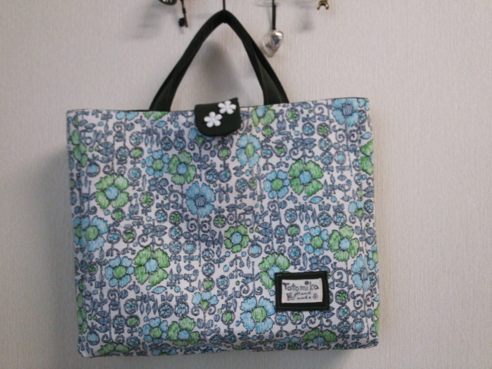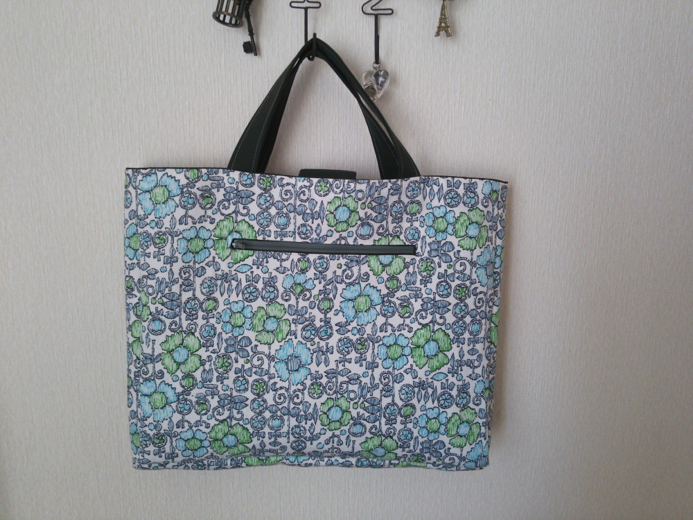 頂き物の生地で大柄なのでどうかなぁと思っていたのですが、シンプルな形だからこそ大柄が生かされていて、思っていた以上にいい感じに出来ました(*^-^*)