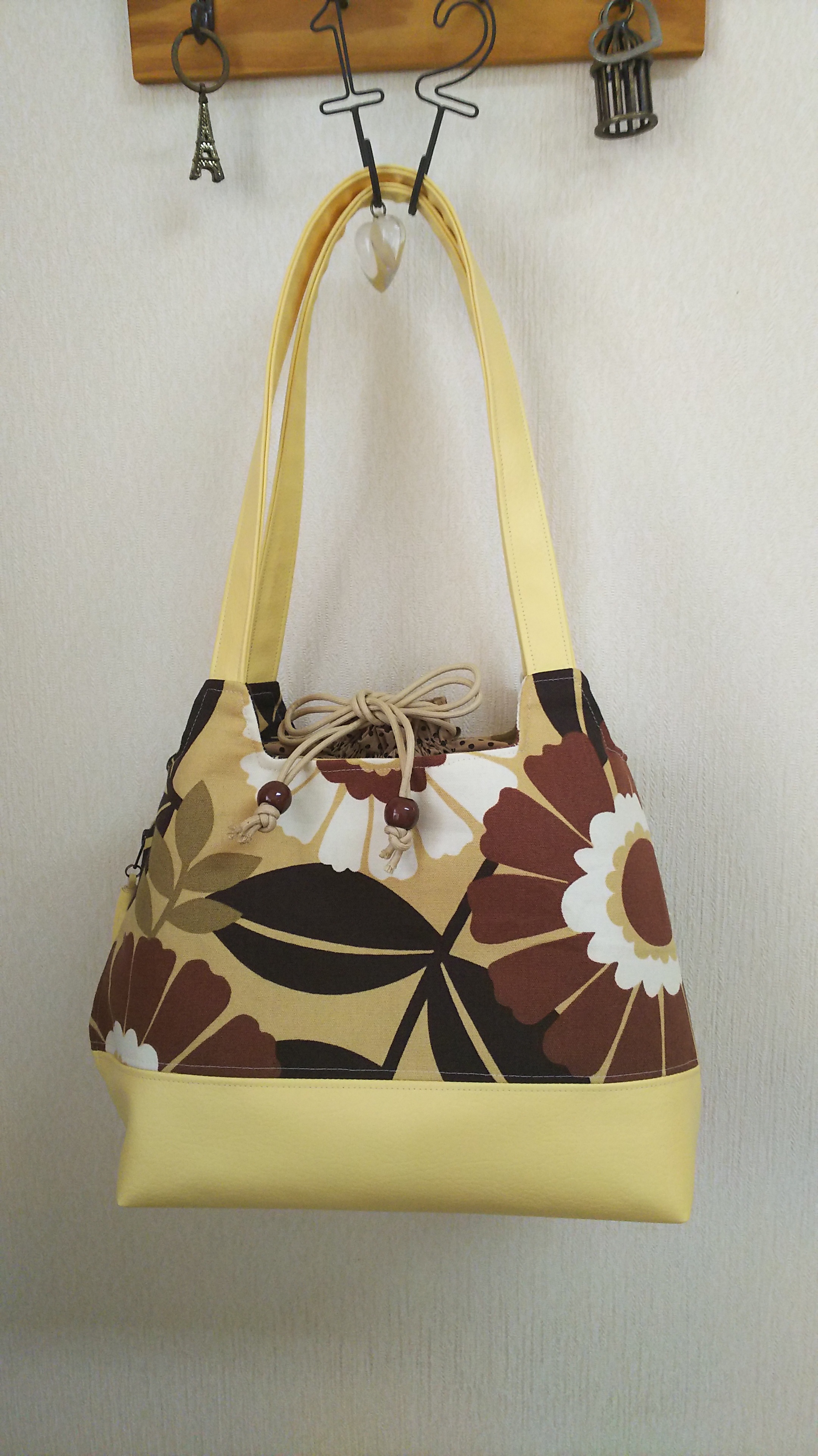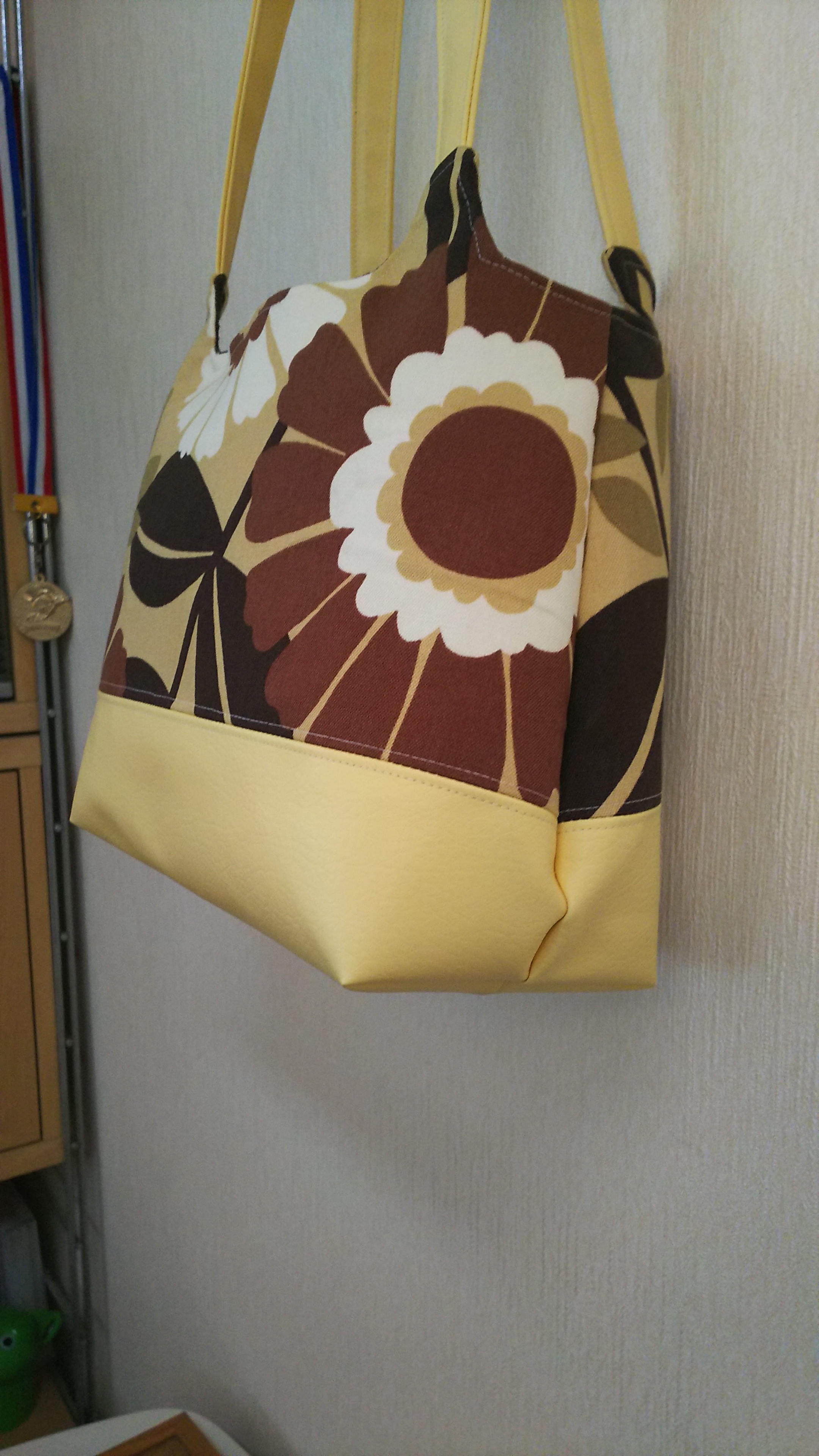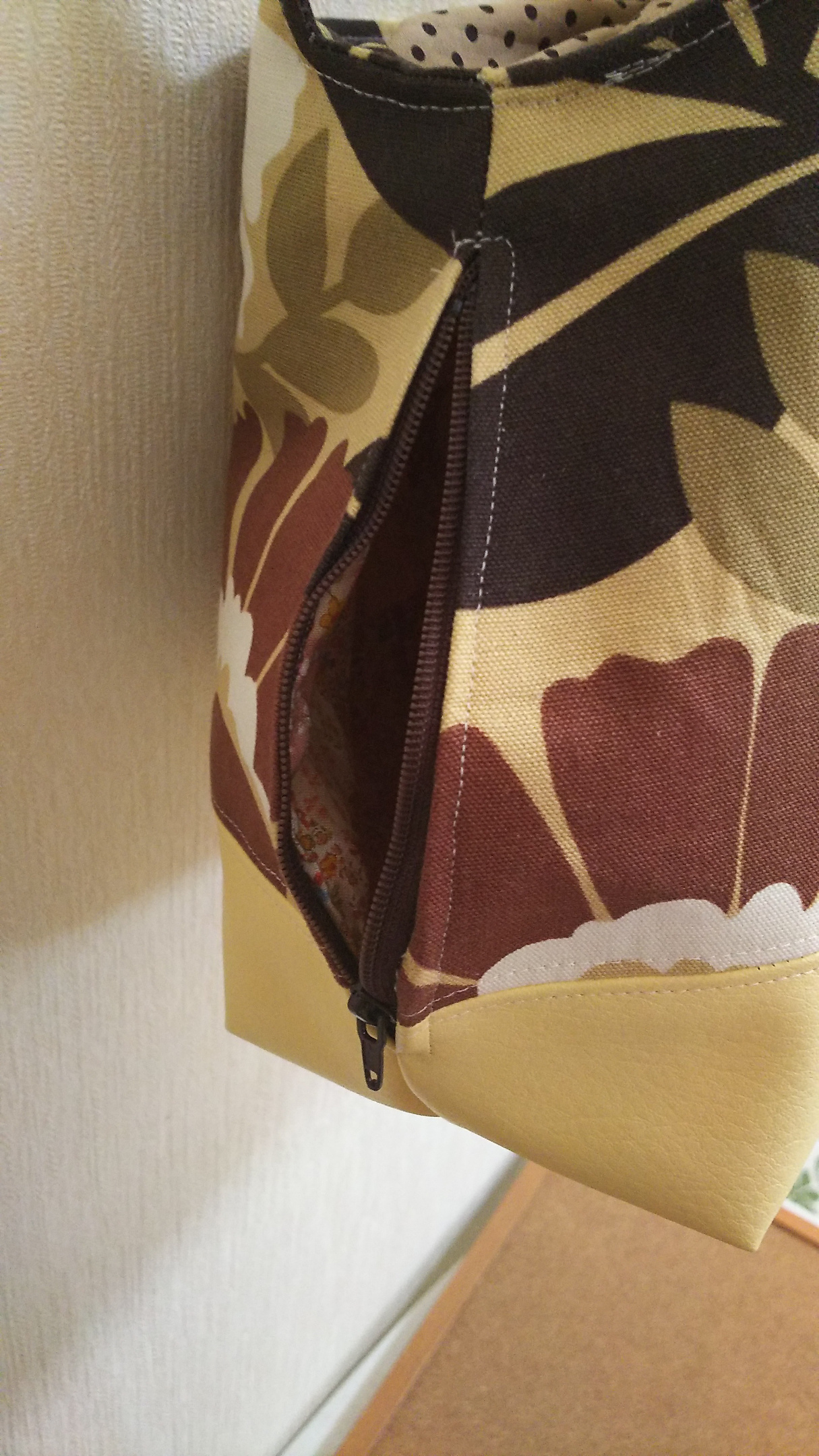 大きな花柄とクリーム色の合皮。