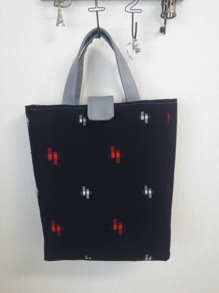 グレーの合皮で持ち手とマグネットフラップ。