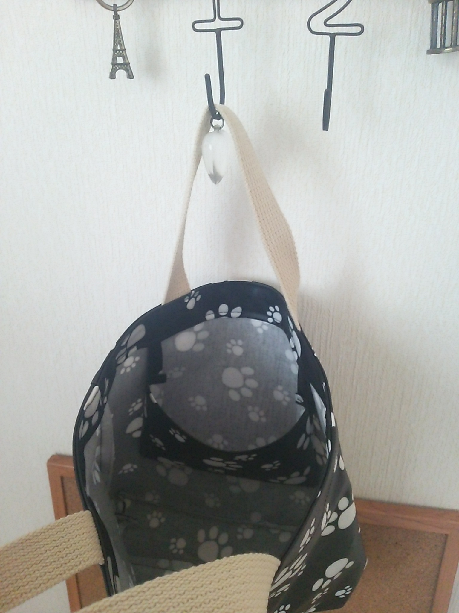 わんちゃん足跡のビニールトートバッグ。