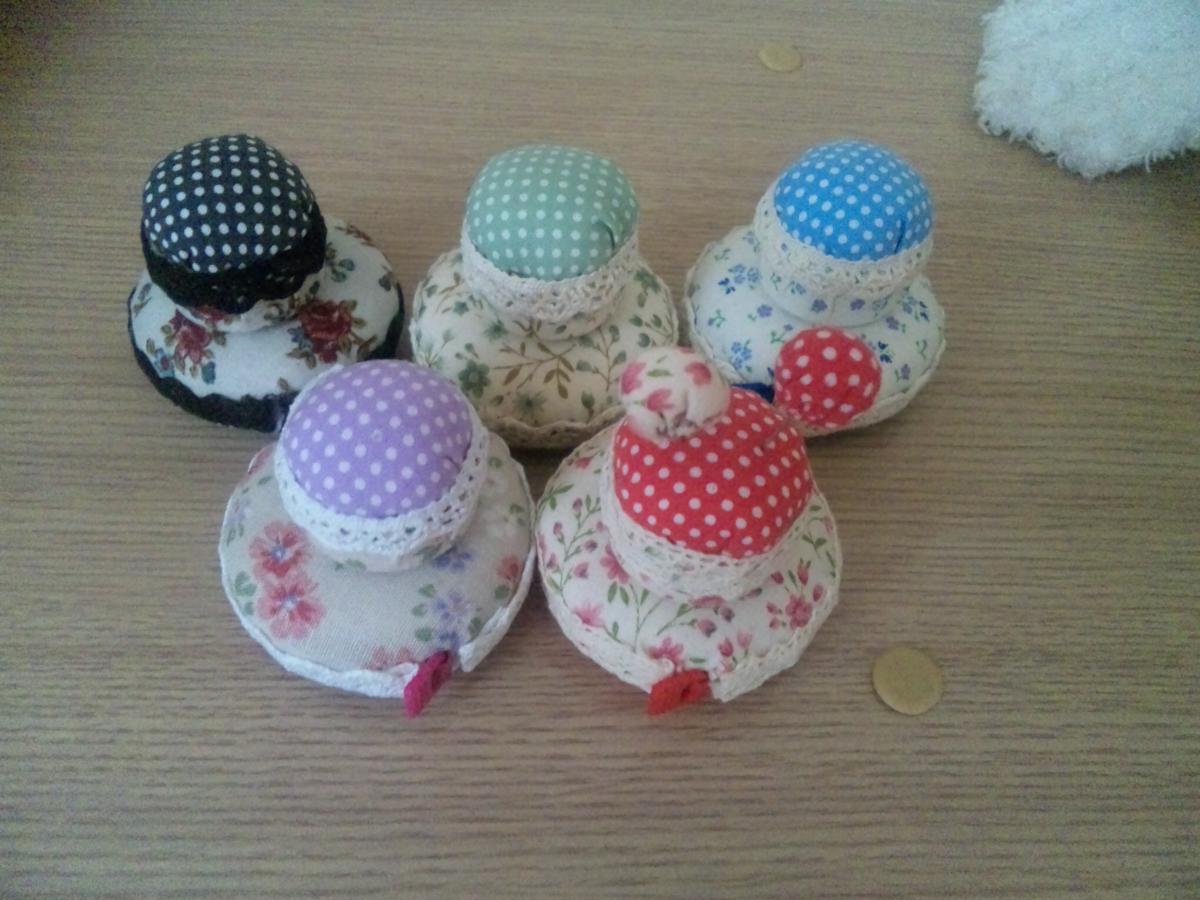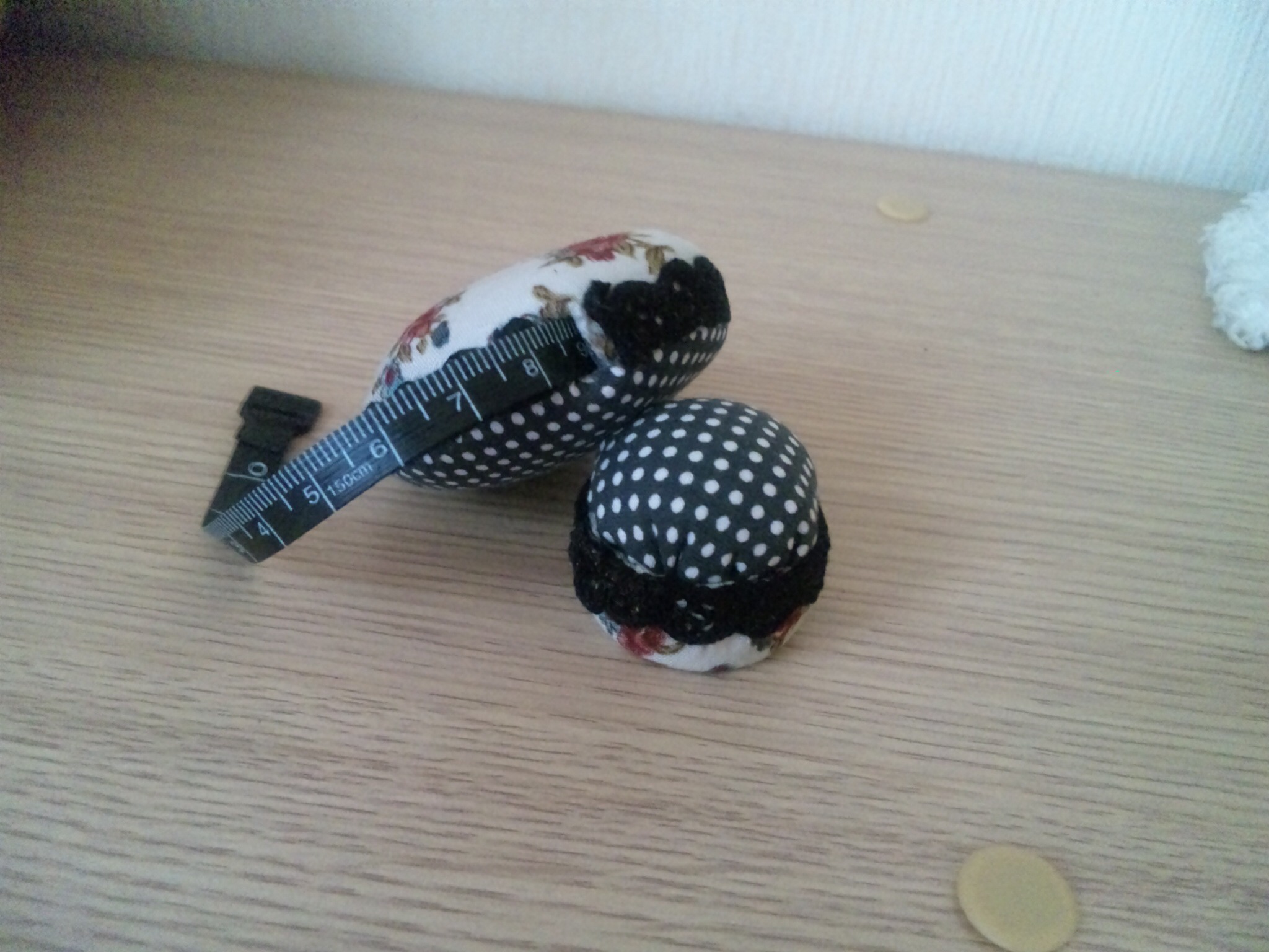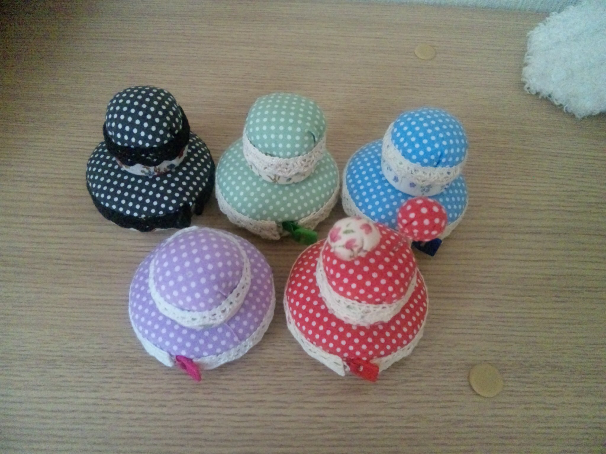 マカロンメジャー&ペットボトルのふたピンクッションのお裁縫セット全員集合でございます。