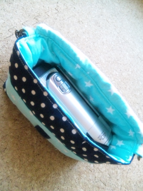 で、マイ生地 紺のドットで作ってみました。