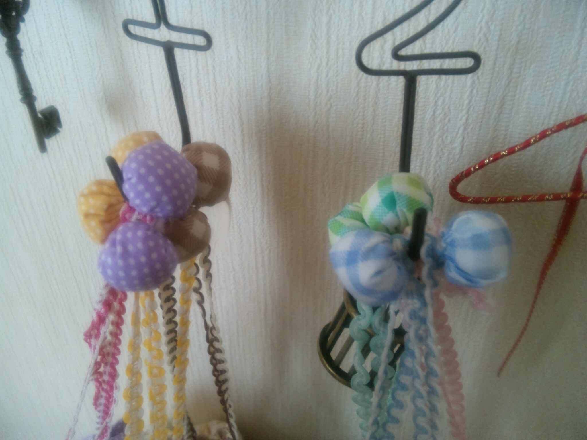口布と同じ生地でヨーヨー作る要領で丸めて中に綿入れてくっつけただけです。