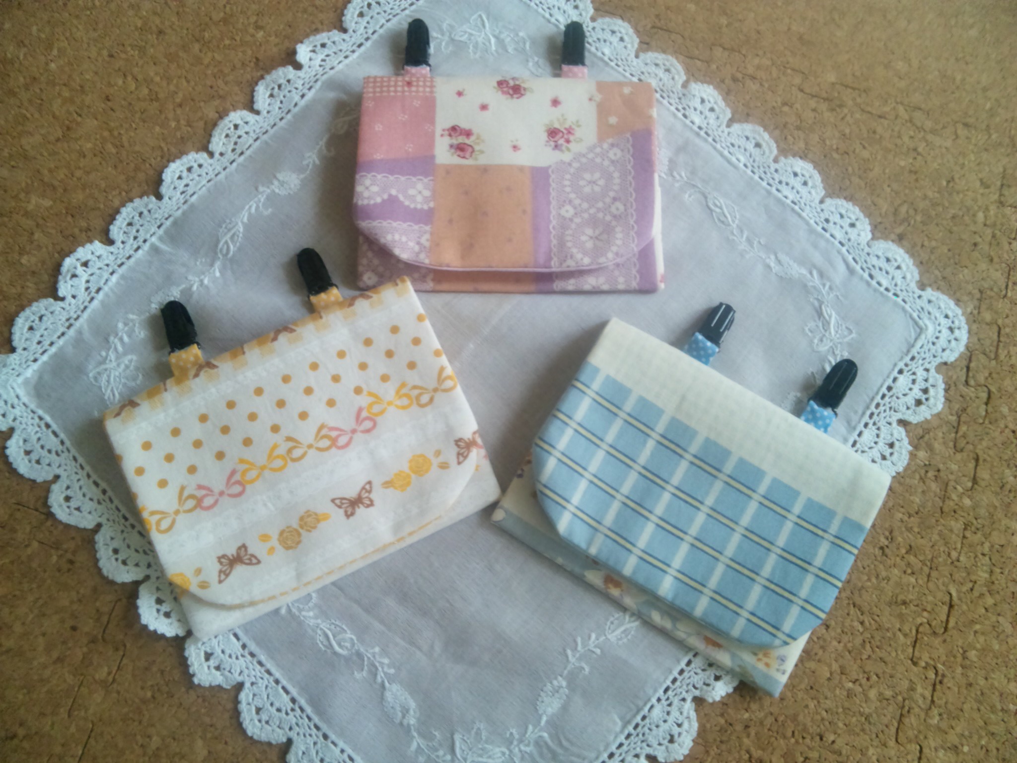 ティッシュ入れとハンカチ入れがセットになってて、スカートのウェストゴム部分などにパチンとはめることが出来る。と言うやつです。