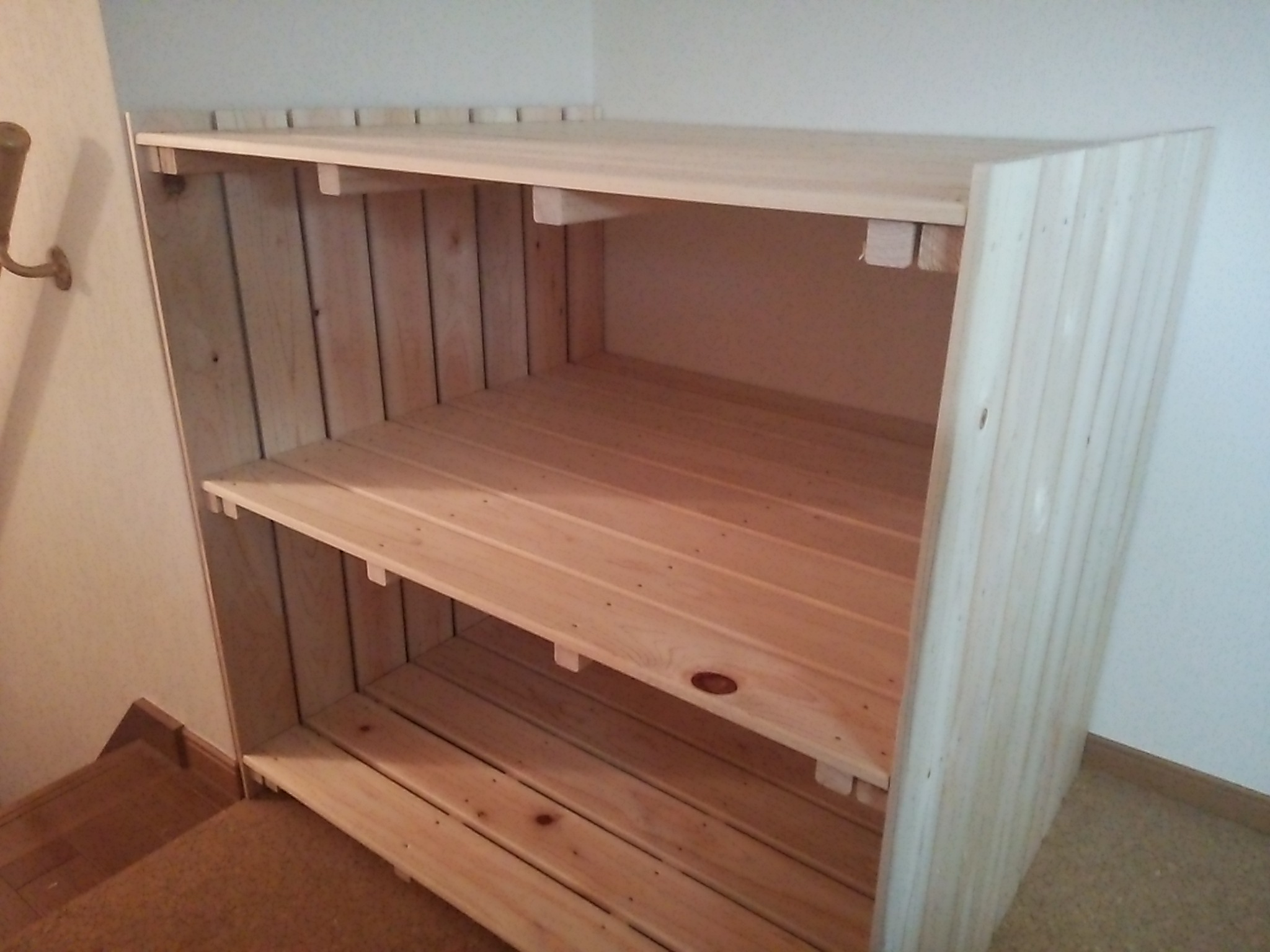 こんな棚、別にカラーボックスで良くない~って思いますよね、でも市販品は駄目だったのです!
