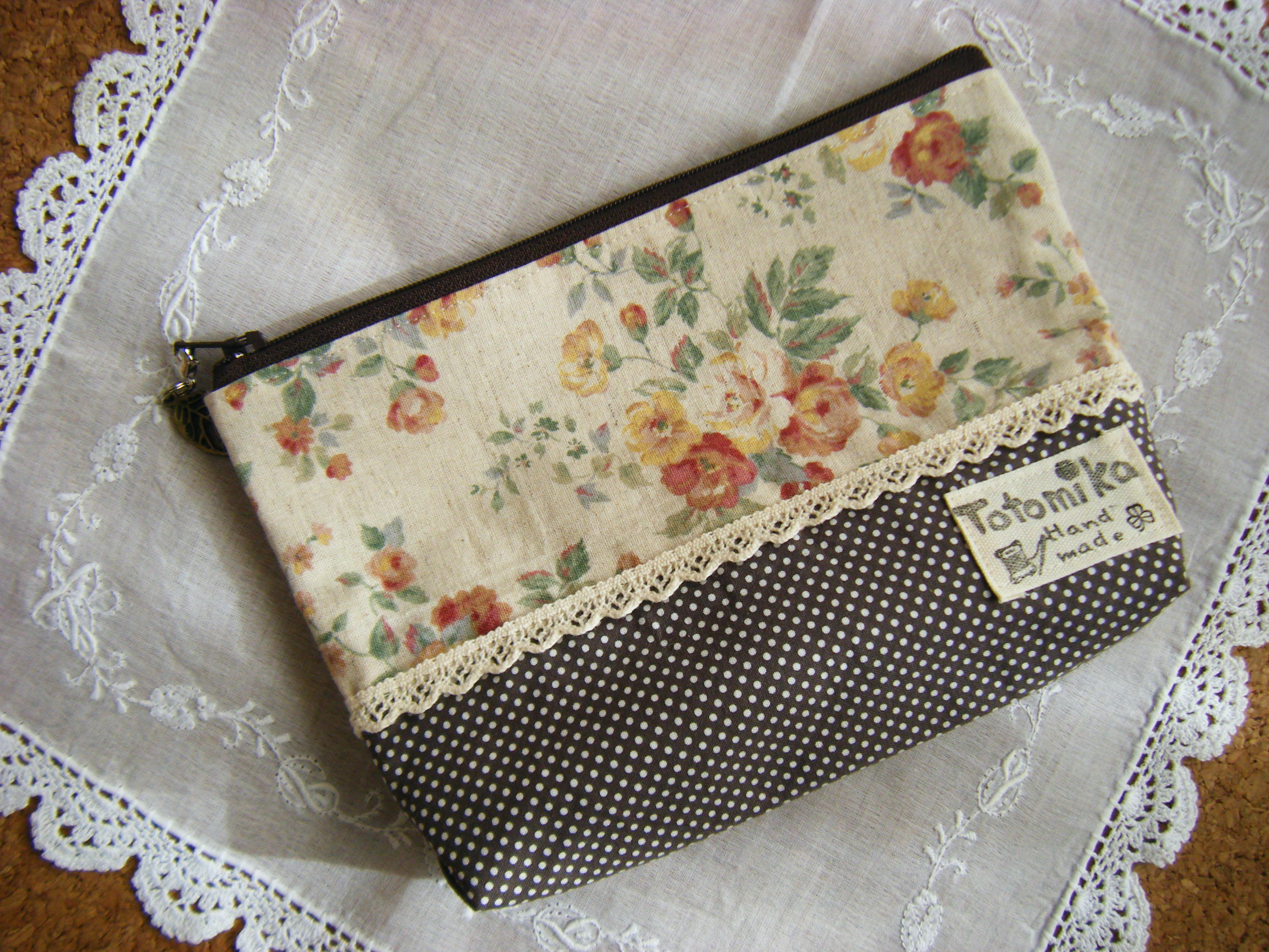 ☆ こげ茶レースファスナーのキャラメルポーチ ☆